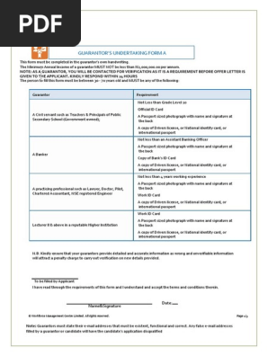 Nigerian passport must complete an application form , pay the requisite fees and book an interview. If you are willing to stand as a guarantor, kindly complete this form in your own handwriting. Usually, it depends on the country's visa policies, so. Guarantor's form duly signed by a commissioner of oaths plus. In a guarantor letter, a person or business is taking financial responsibility for another person or business, should they forfeit on a contract.